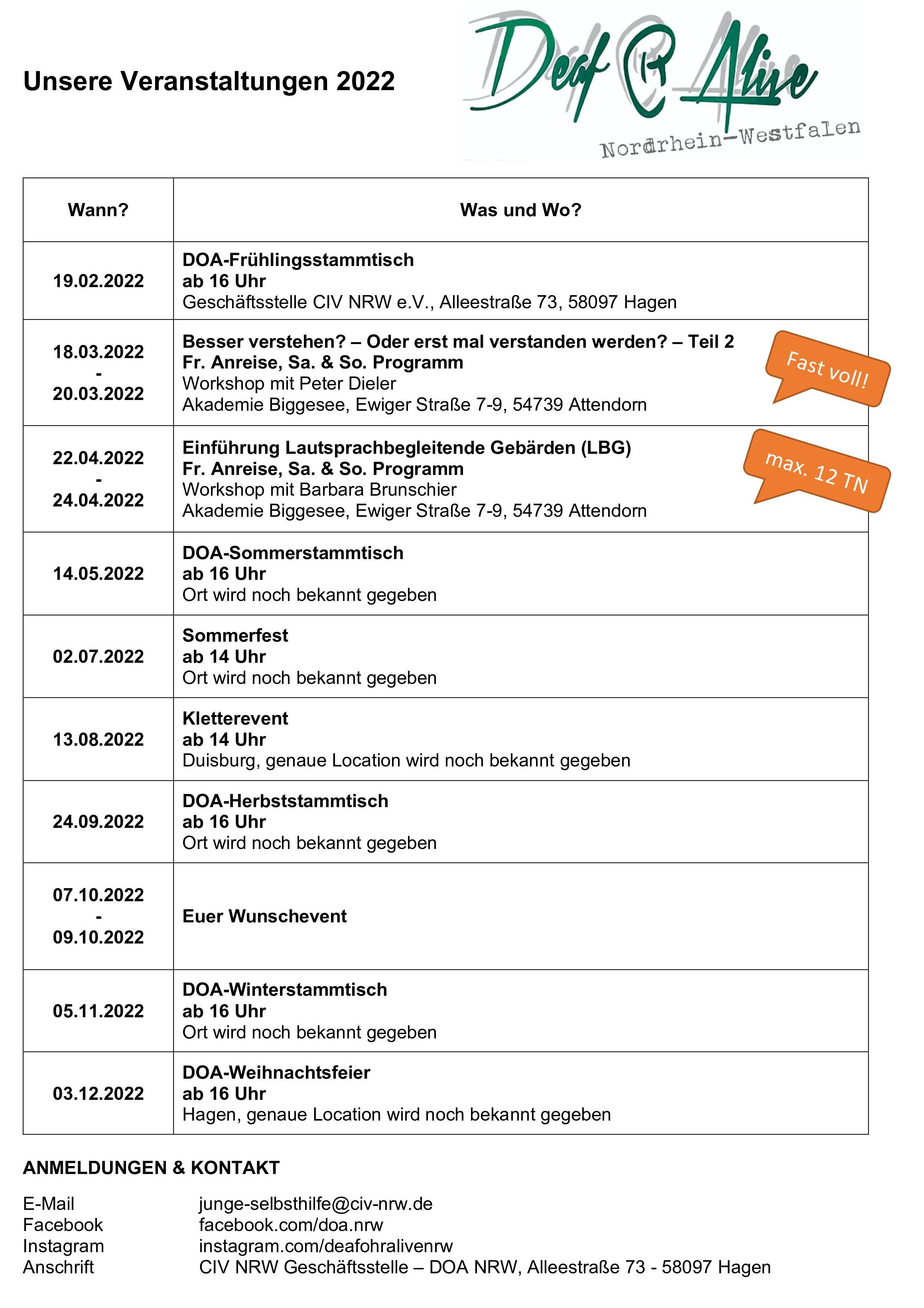 Wir haben auch schon einige Termine für 2022 geplant oder in Angriff genommen, die Übersicht seht ihr rechts.